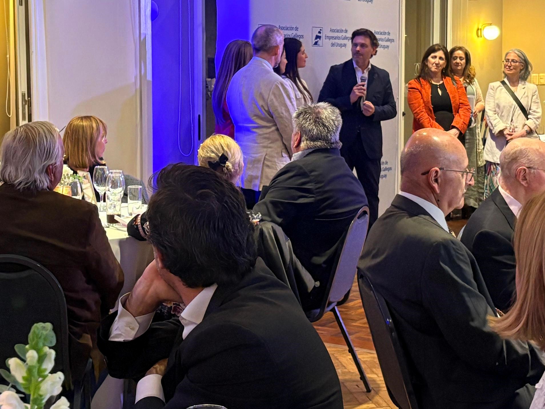 Durante a celebración, a Asociación de Empresarios Galegos do Uruguai rendeu tamén unha homenaxe especial ao emprendedor galego Manuel Losa, recoñecendo a súa traxectoria empresarial e a súa contribución ao fortalecemento da presenza galega no tecido económico uruguaio. Miranda destacou que Losa “representa o mellor da nosa diáspora emprendedora: esforzo, visión e un compromiso permanente con Galicia”, subliñando que historias como a súa “son exemplo inspirador para as novas xeracións de profesionais galegos no exterior”. No acto entregáronse tamén os Premios Novo Talento Emprendedor, un recoñecemento aos novos proxectos gañadores e aos mozos que aspiran a converterse nos futuros emprendedores galegos no Uruguai.