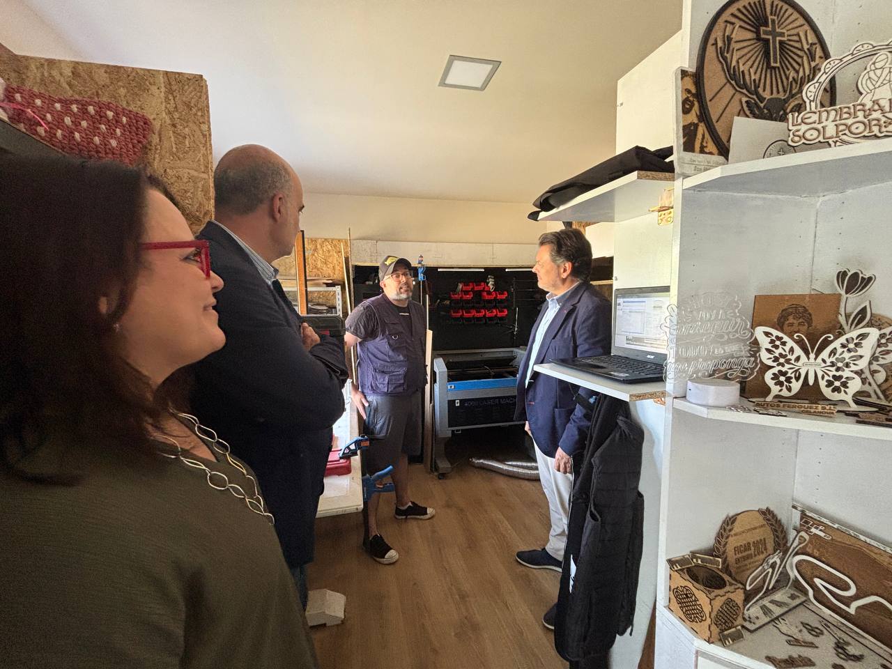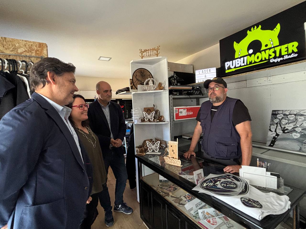 Rubén, de 43 anos, regresou hai tres anos coa súa familia desde Alemaña e decidiu converter a súa paixón polo deseño e o gravado nun proxecto empresarial. En agosto de 2022 abriu o seu taller nun local rehabilitado da antiga caseta da Cruz Vermella de Vilanova dos Infantes, onde ofrece servizos personalizados de impresión, rotulación, gravado e deseño para eventos ou negocios.