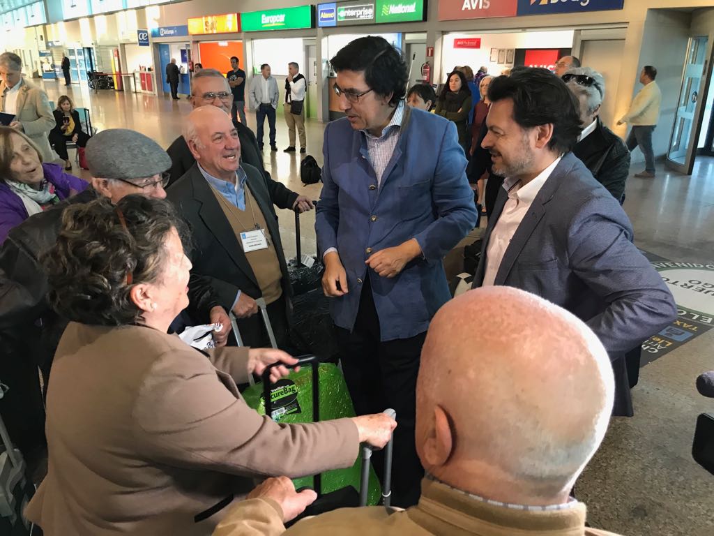 O secretario xeral da Emigración, Antonio Rodríguez Miranda, acompañado polo delegado territorial da Xunta en Vigo, Ignacio López-Chaves, vén de recibir no aeroporto de Peinador a segunda quenda de participantes no programa “Reencontros na Terra”, desenvolvido coa colaboración da Consellería de Política Social. Trala chegada onte das e dos beneficiarios procedentes de Bos Aires, São Paulo, Salvador de Baía e La Habana, que superan os oitenta, ao longo do día de hoxe aterrarán nas instalacións aeroportuarias de Vigo as e os preto de 60 que o voarán procedentes de Montevideo, Rio de Xaneiro e Caracas tras facer escala en Madrid. En total, son 135 as e os emigrantes nacidos en Galicia e as súas e os seus acompañantes os que gozarán do intenso programa de actividades deseñado pola Secretaría Xeral da Emigración.