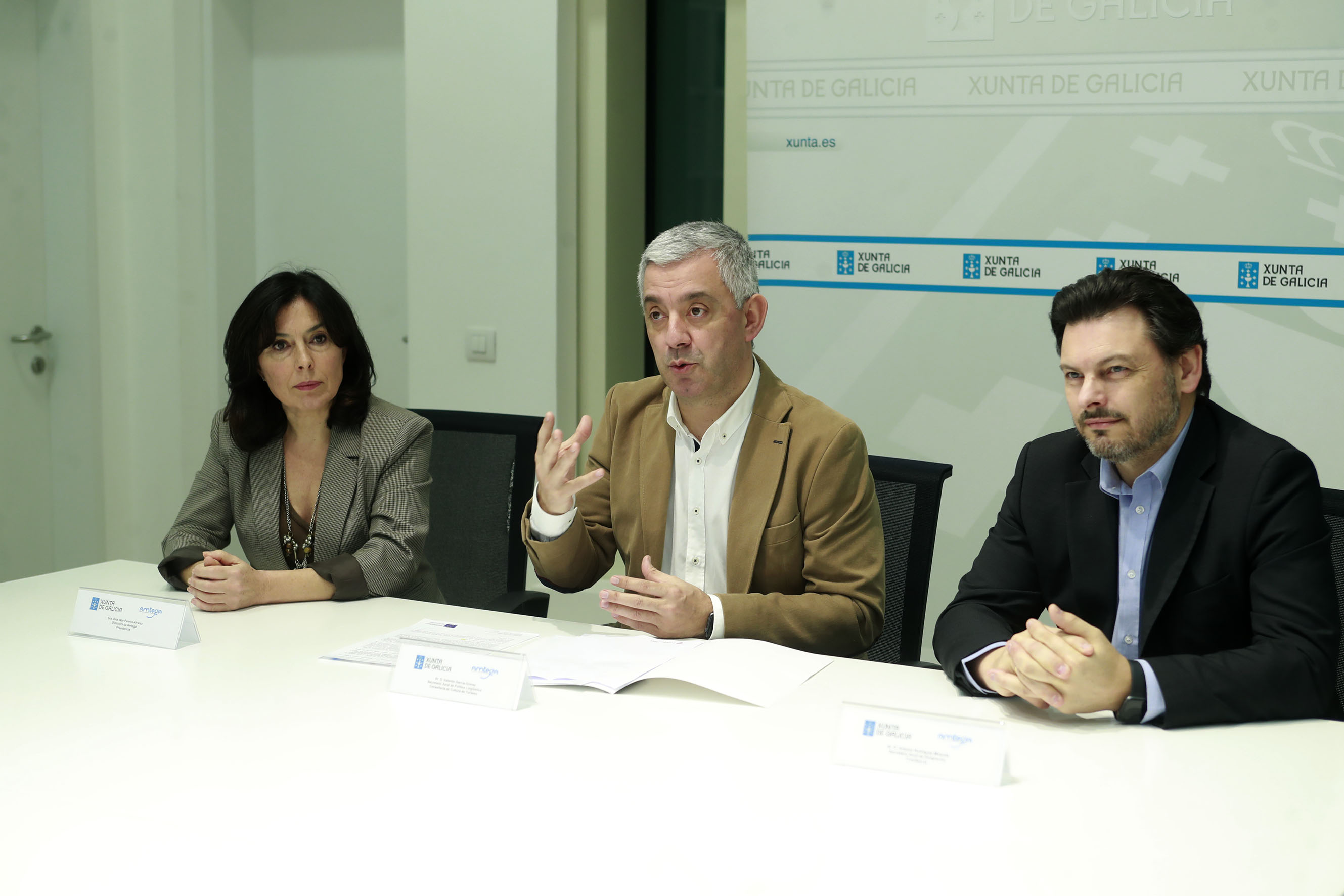 Así o deron a coñecer hoxe pola mañá en rolda de prensa os secretarios xerais de Política Lingüística e da Emigración, Valentín García, e Antonio Rodríguez Miranda, respectivamente, e mais a directora da Axencia para a Modernización Tecnolóxica de Galicia (Amtega), Mar Pereira, acompañados do responsable da empresa encargada de desenvolver este proxecto, imaxin l software, Diego Vázquez Rey, e da subdirectora xeral de Política Lingüística, Mª Lourdes Batán.