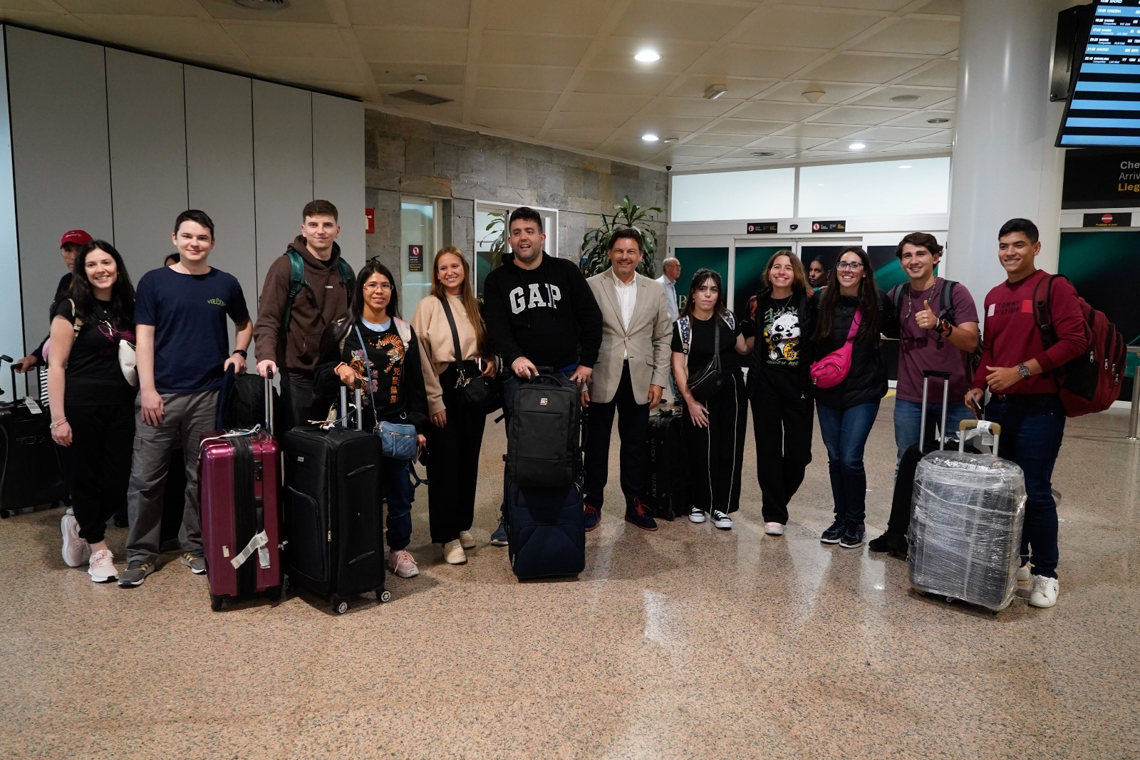 O secretario xeral da Emigración, Antonio Rodríguez Miranda, acompañado pola delegada territorial da Xunta na Coruña, Belén do Campo, recibiu hoxe no aeroporto de Alvedro aos beneficiarios do programa Conecta co Voluntariado, unha iniciativa destinada á mocidade galega residente no exterior.
