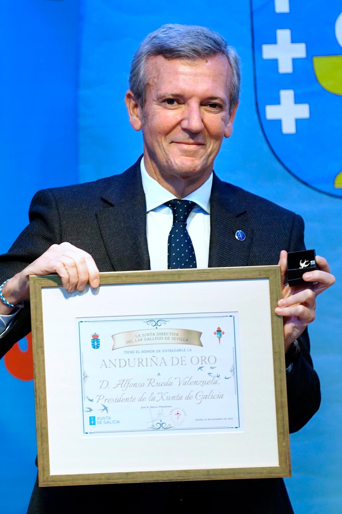 O presidente do Executivo autonómico recibiu a distinción “Anduriña de Ouro” que outorga o Lar Gallego de Sevilla.