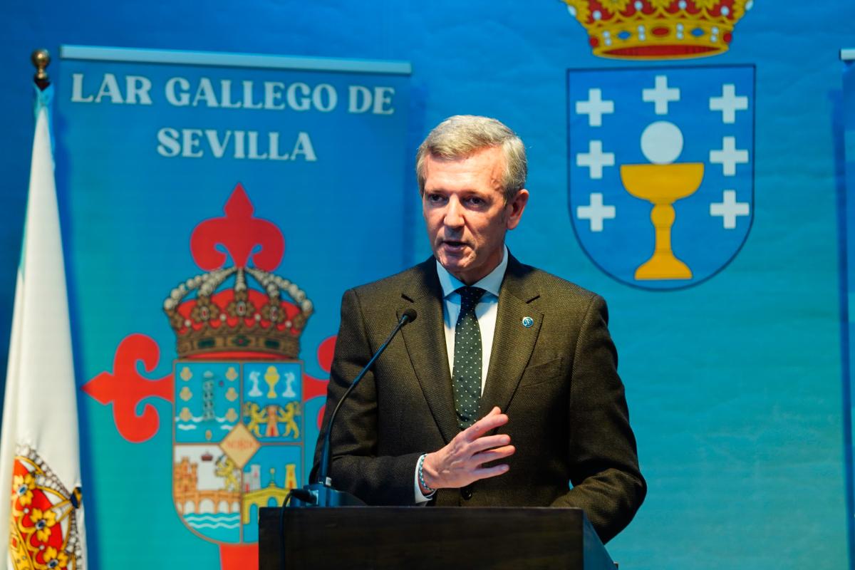 O presidente da Xunta, Alfonso Rueda, reivindicou hoxe o papel que exercen os centros galegos á hora de proxectar a imaxe de Galicia no exterior e de manter vivas a cultura e tradicións da nosa comunidade, tanto no resto de España como no estranxeiro. “O que facedes aquí no Lar Gallego de Sevilla é un exemplo do que se fai en tantos lugares de España, de Europa e de América”, destacou.