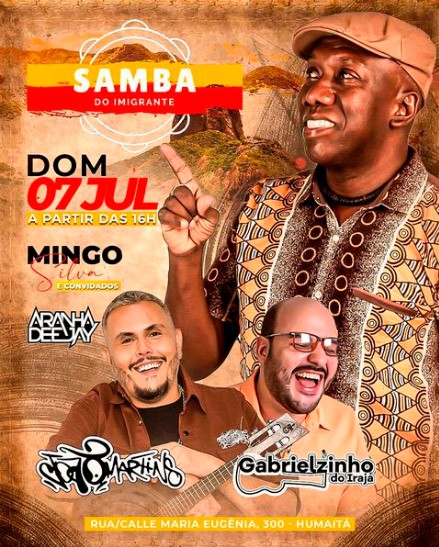 El domingo 07 de julio a partir de las 16:00 h, en la sede de la entidad gallega en la ciudad brasileña, la Casa de Espanha de Río de Janeiro organiza la 2ª edición da Samba do Imigrante.