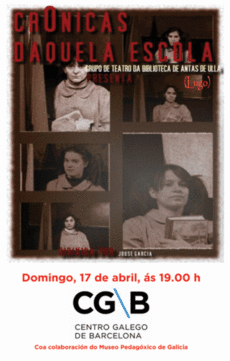 El domingo 17 de abril a partir de las 19,00 h., en la sede de la entidad, el Grupo de teatro de la Biblioteca de Antas de Ulla (Lugo) dirigido por José García representará la obra Crónicas daquela escola.