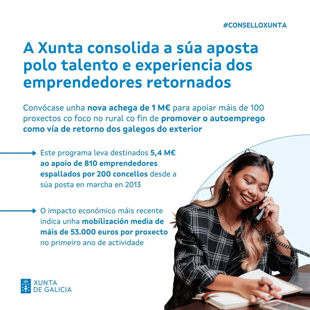 La Xunta consolida la apuesta por el talento y experiencia de los emprendedores retornados con una nueva aportación de 1 M€ para apoyar más de 100 proyectos con el foco en el rural