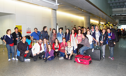 Imagen de la llegada esta mañana de las y los participantes del programa 'Escolas Aberta 2014' de la Secretaría Xeral da Emigración al aeropuerto compostelano de Lavacolla