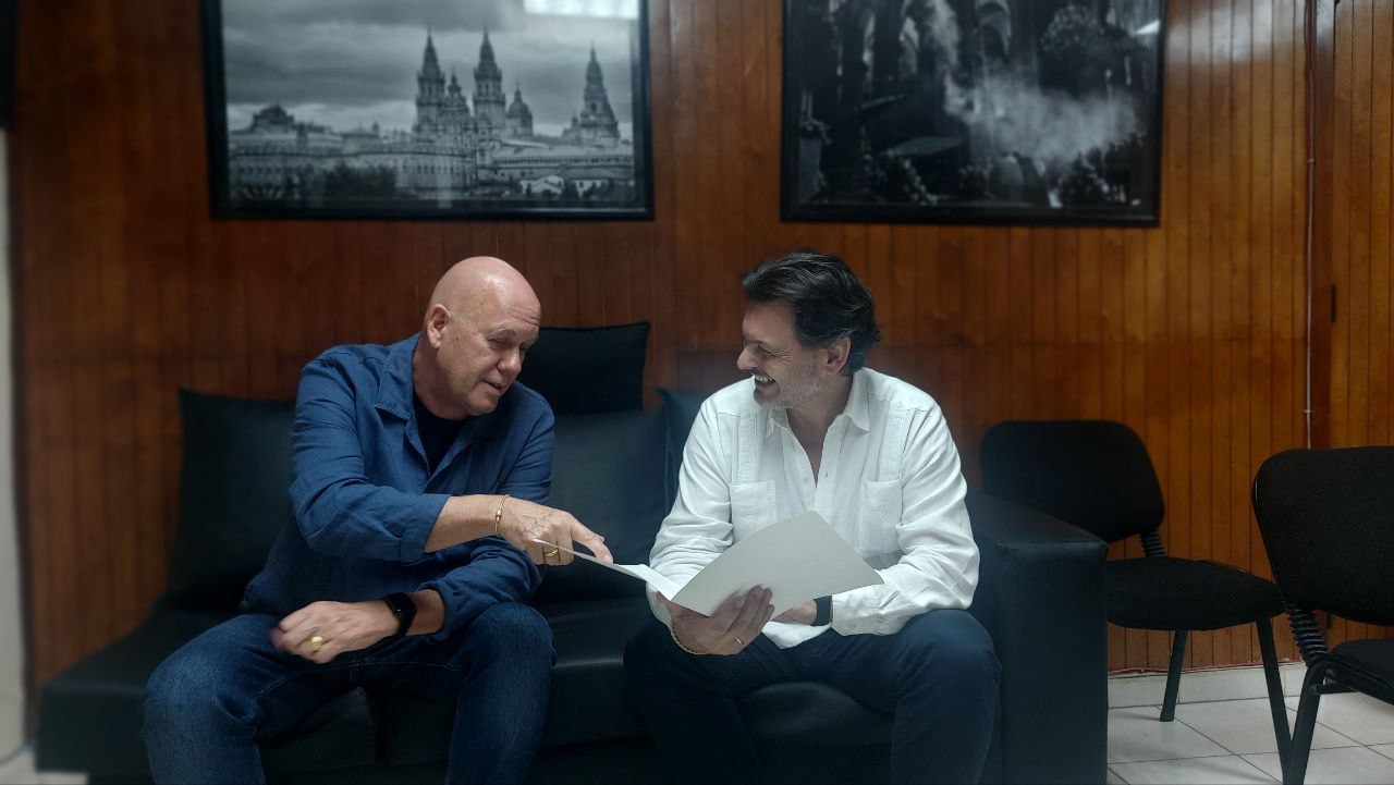El secretario xeral da Emigración y el presidente de la Federación de Sociedades Gallegas en Cuba, durante la reunión celebrada en La Habana