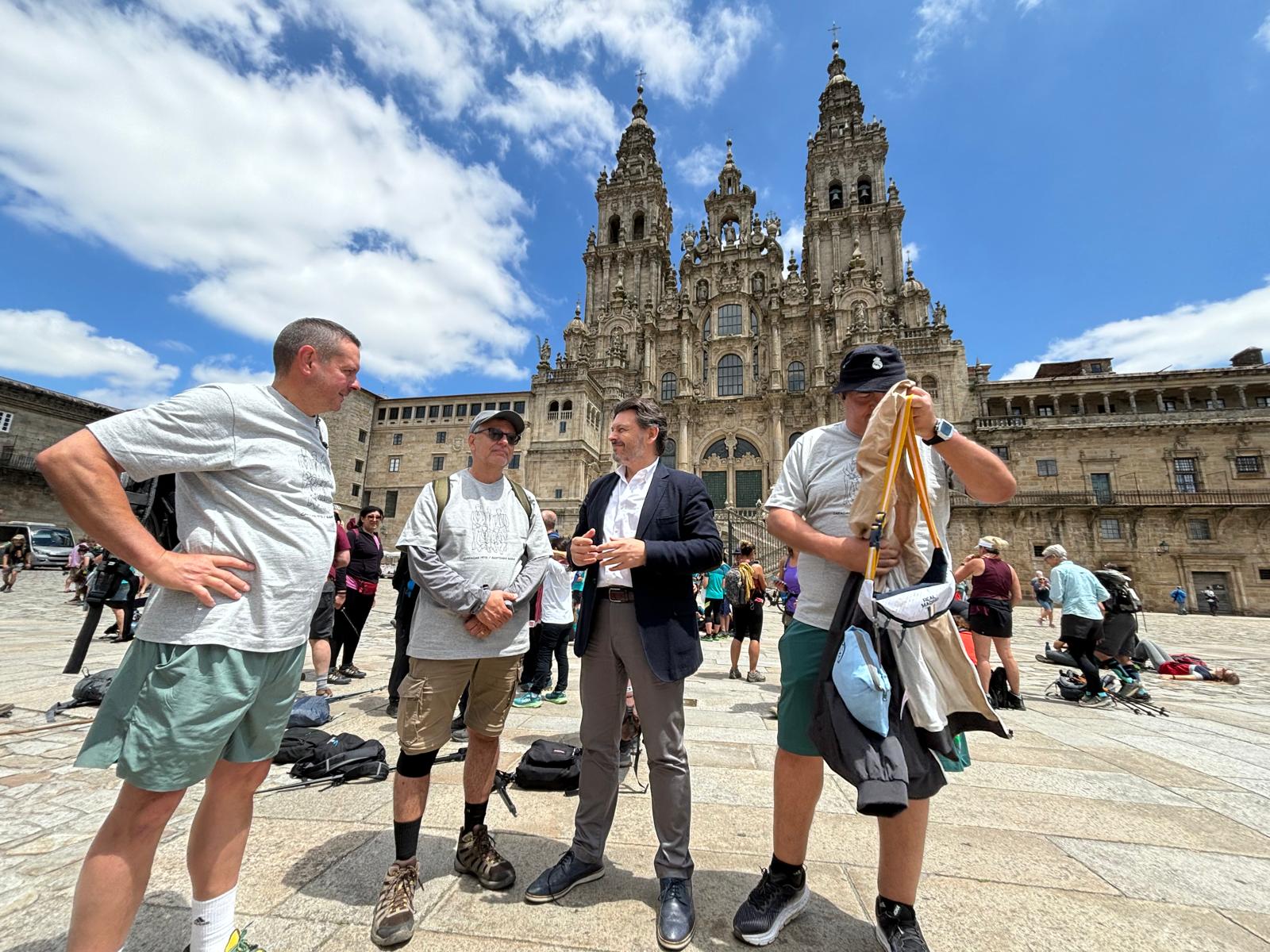 El secretario xeral da Emigración, Antonio Rodríguez Miranda, recibió a varios gallegos miembros de la Hermandad Gallega de Venezuela que llegaron a la Praza do Obradoiro después de recorrer el Camino de Santiago, donde destacó la importancia de mantener vivas las raíces y las conexiones con la tierra natal, y elogió el esfuerzo y la determinación de estos peregrinos por completar esta experiencia tan significativa. En el recibimiento también los acompañó el secretario xeral para o deporte, José Ramón Te lee.