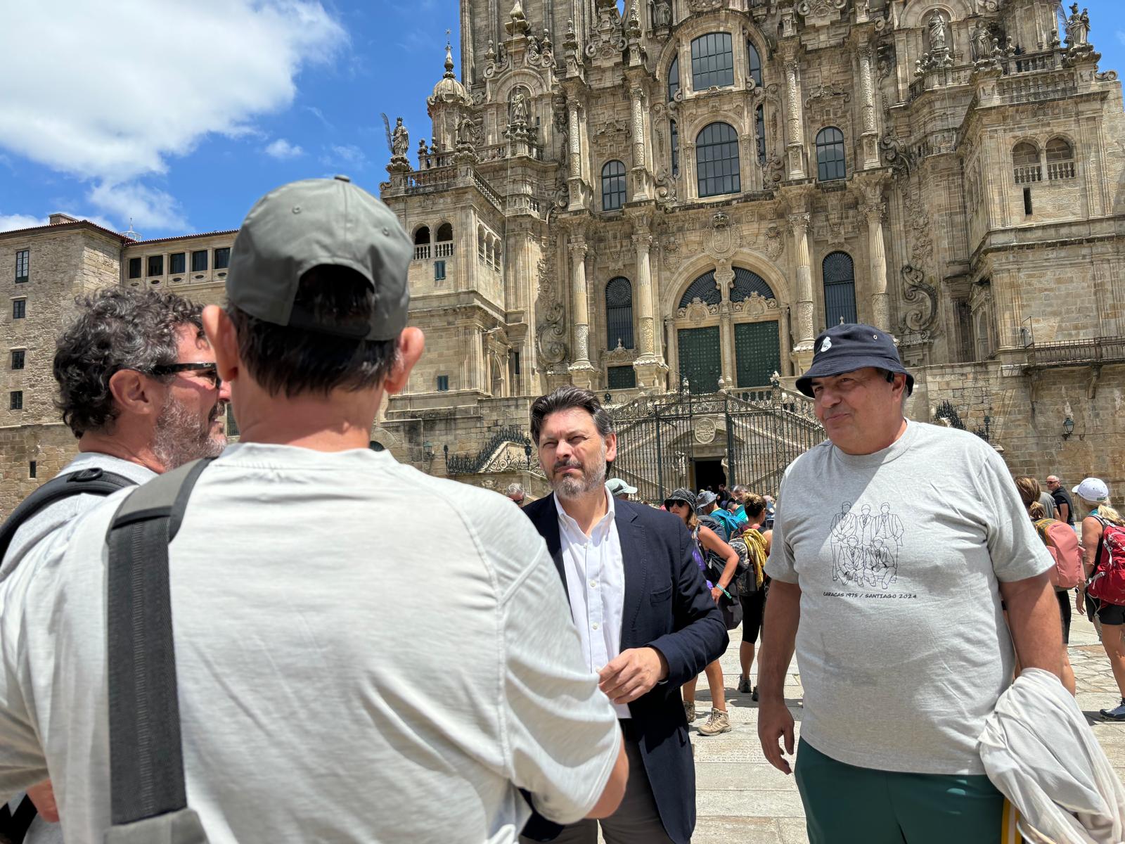 Miranda destaca la importancia de las raíces gallegas tras recibir a peregrinos gallegos de la Hermandad Gallega de Venezuela en la Praza do Obradoiro
