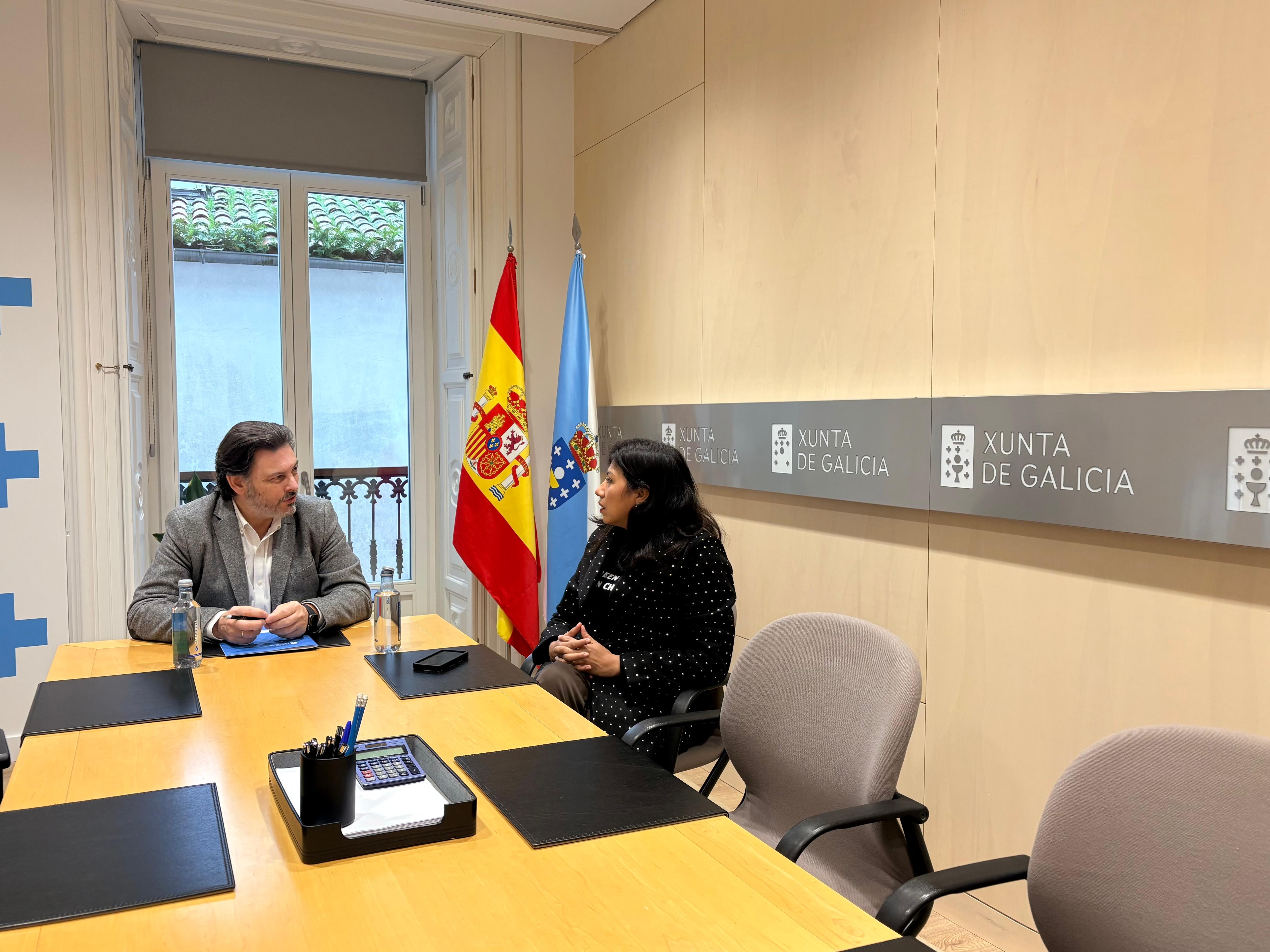 El secretario xeral da Emigración, Antonio Rodríguez Miranda, mantuvo una reunión de trabajo con Evelyn Castillo, vicepresidenta del Centro Gallego de Perú, en la que analizaron la situación actual de la entidad y los pasos que se están dando para su reactivación como espacio de referencia de la colectividad gallega en el país andino.
