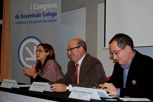 • De esquerda a dereita, a presidenta do Consello da Xuventude Galega, O Secretario Xeral de Emigración e o Director Xeral de Comunicación Audiovisual. Foto: Xunta de Galicia