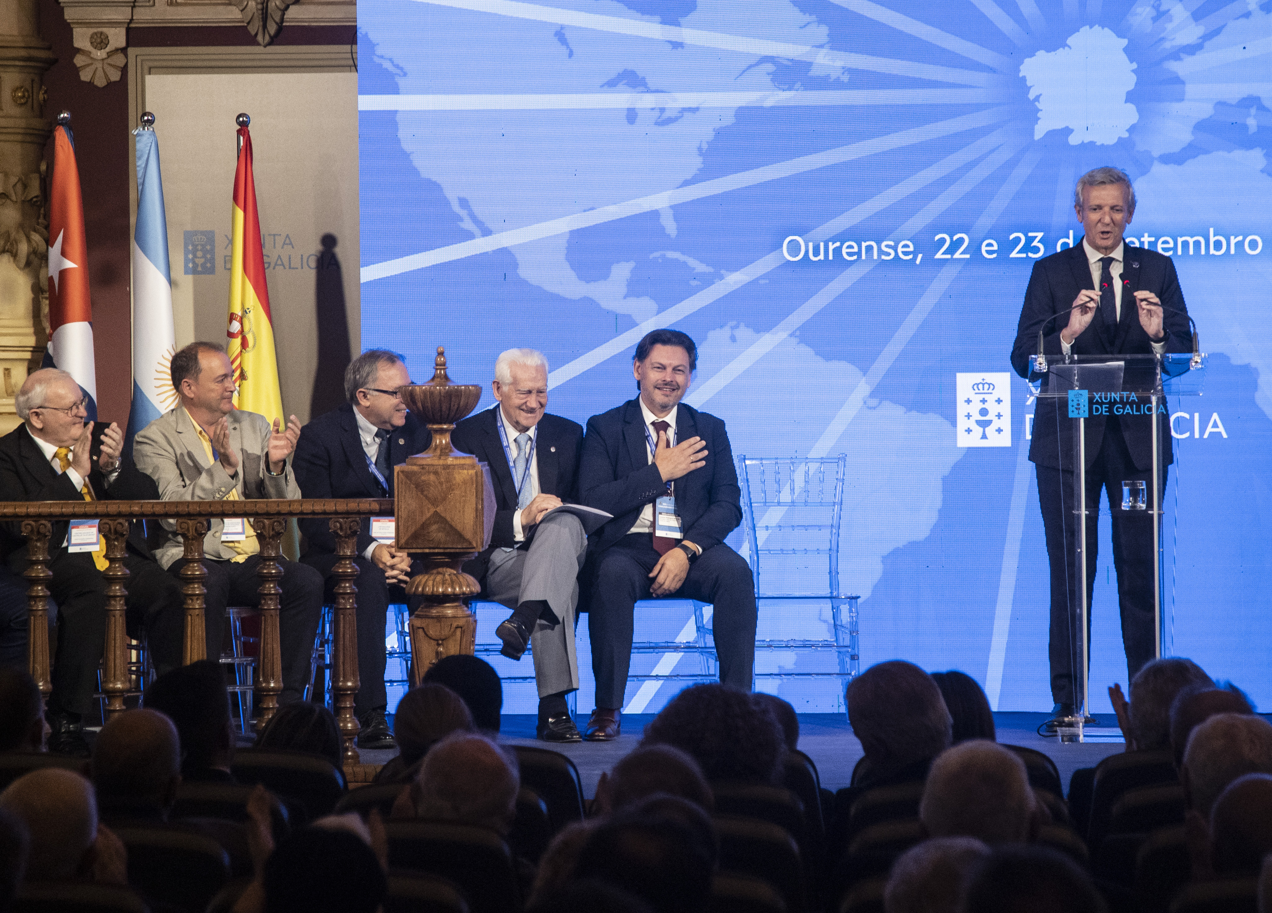 Galería de imágenes del XIII Pleno del Consello de Comunidades Galegas, celebrado los días 22 y 23 de septiembre de 2023 en Ourense, y que reunió a representantes de 80 entidades gallegas del exterior en un pleno que fue inaugurado por el presidente de la Xunta de Galicia, Alfonso Rueda Valenzuela.