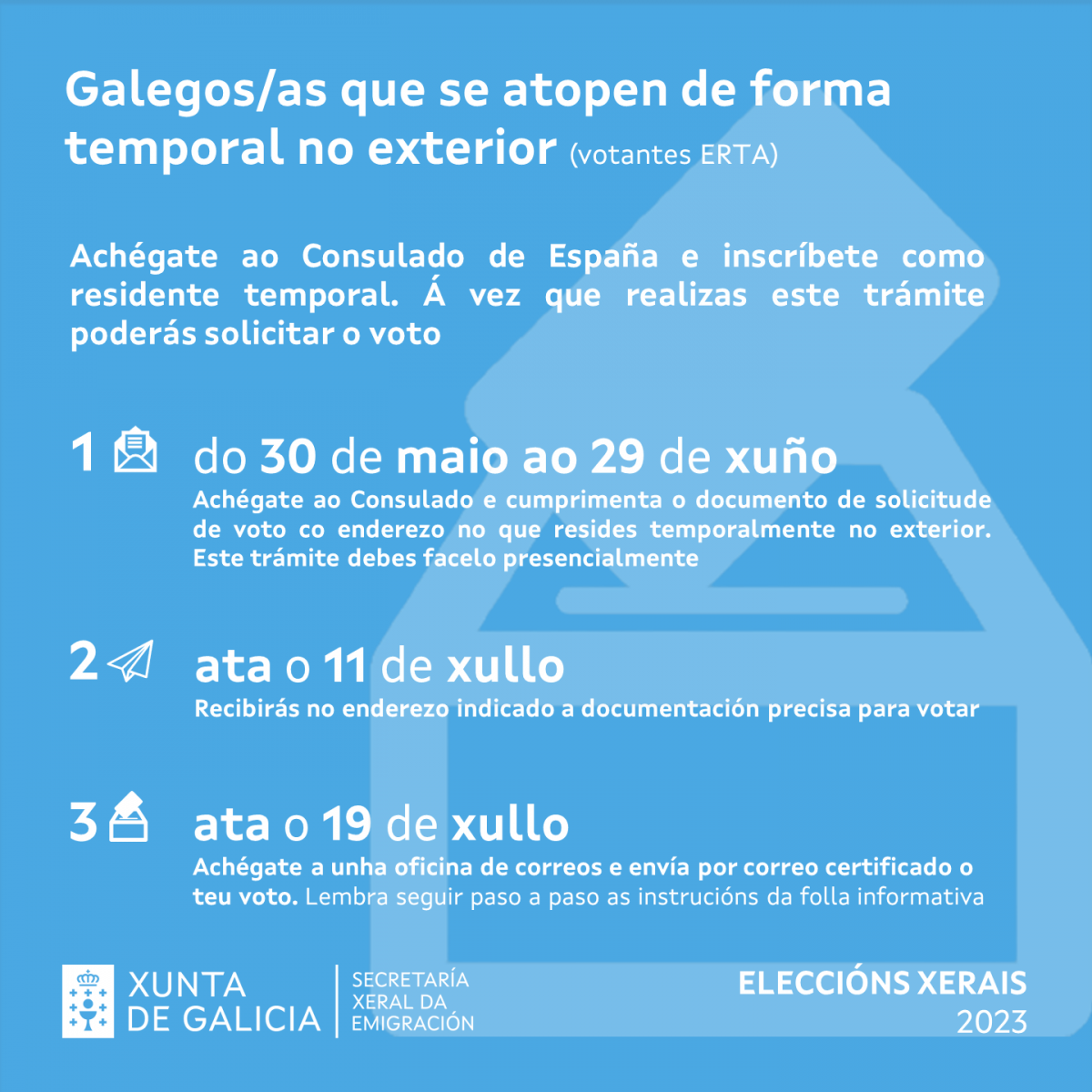⮞ Gallegos/as que se encuentren de forma temporal en el exterior (votantes ERTA)